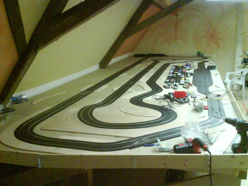 Par contre remet nous plutôt ses photo dans la rubrique concerné (piste bois ou plastique ...ect...) et tu pourra nous montre l'avancement des travaux que l'on vivra avec intérêt.A, un petit commentaire, je pense que j'aurais centre le plateau pour avoir accès sur trois cote pour faciliter le ramassage au vue de la largeur du futur circuit et permis de réaliser des beaux rangements droite et gauche dessous.
