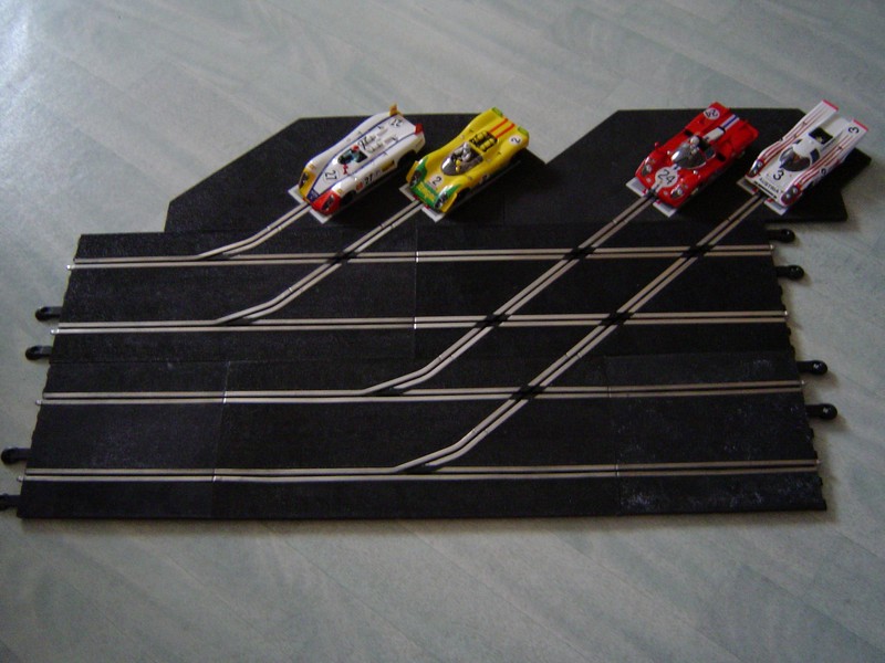SCX. Ces rails étaient vendu uniquement en Espagne. Ce type de rail existe chez Scalextric en version "classic" mais je n'aime pas car les voies de départ se croisent