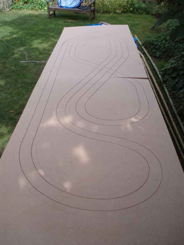 Un 3° circuit est en préparation : Comme j'habite en appartement, je me construit un circuit en bois facilement démontable. Il est en 2 morceaux, le tout fait 4,70m x 1,40m. Aucun relief pour pouvoir glisser les 2 planches derrière un meuble. Les photos sont pour cet été !