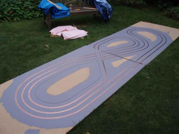La 2° photo est un peu flou, c'est un circuit pour tester les revêtements : C'est de la peinture pour tableau noir d'école. le résultat est assez agréable. J'ai aussi essayer la peinture pour parking, là je suis plus mitigé...