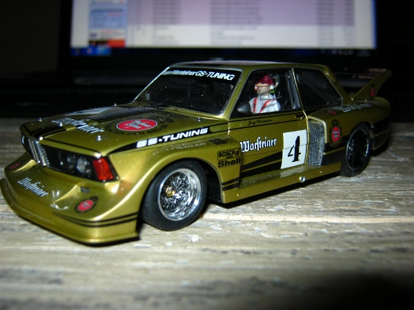 L'aston est une vieille coque revell sur chassis mini ninco ,jantes alu ,arceau ,grilles alu peintes en jaune .Peinture bleu metal et vernis brillant.reste le phares à faire .