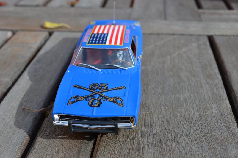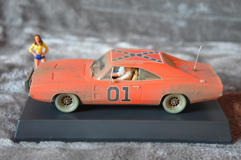 Pour des nouveaux modèles il doit acheter les droits pour cela et c'est pour cela qu'il n'y a pas bousculade dans les modèles…….celui du général Lee de Duke off Hazard lui a coûter probablement moins cher la cause il n'a pas l'exclusivité de ce modèle car scalextric aussi le produit. Donc côté risque et investissement il ne se mouille pas Pioneer il reste coller a ces moulles de charger, mustang, camaro, et deux ou trois autre que je ne connais pas donc sûrement moins populaire. Acheter les droits de livrés qui existe c beaucoup plus cher que de changer les couleurs des ceux qu'il a déjà. Aussi de coller des dessins sortie de son imagination sur ces bolides beaucoup plus dans ces cordes…. donc a quand la mustang de Bullitt avec les couleurs du général Grant et pourquoi pas une camaro avec le signe de Batman ou les couleur de la MAX-5....