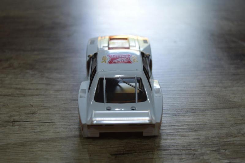 Ensuite j'ai changé l'axe arrière, la couronne en plastique par une Slot.it GS1936, le moteur par un NSR 3041 SHARK 21.5 EVO et remplacé le pignon en plastique de 12 dents par un Slot.it (PI7013E) de 13 dents. Les jantes et les pneus sont restés d'origine.
