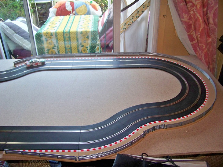 Bonjour à tous, je reprend le slot après quelques mois d'arret mais j'ai démonté mon ancien circuit pour passer à quelque chose de très petit voire modeste sur un plateau d'1m50 par 1m donc j'ai beaucoup réduit la voillure.