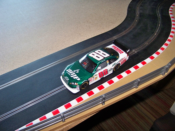 bonjour à tous, bon j'ai refait un circuit de taille respectable et j'ai acheté une nascar scalextric,
