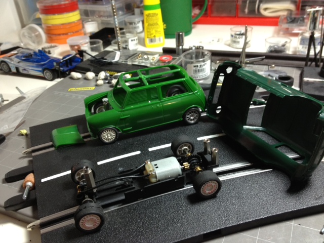 des Mini 1/24 Tamiya ou Fujimi sur châssis slot classic (si vous avez des maquettes à vendre, on est preneur vu le nombre de participants)