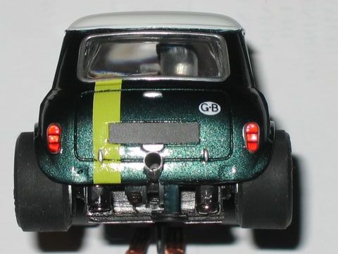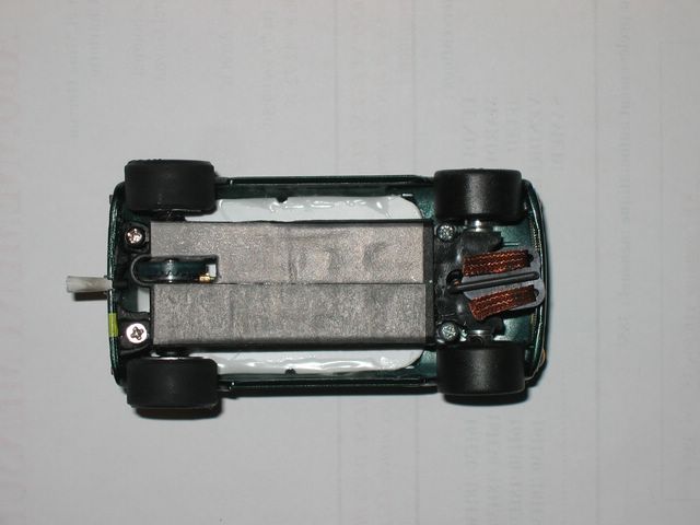 Vieille Scalex revue sur un berceau moteur Slot It qui fait office de chassis .