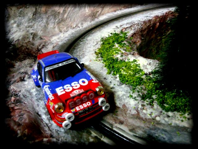 et la..l idée de mon circuit... pour aller plus loin il me servira de décor pour mes petite 1/43 de collection... la exemple une petite porsche rallye bien connue dans son univers..