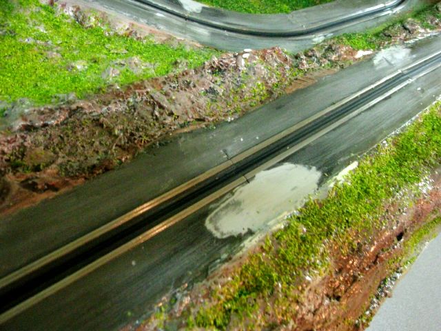 bon aller.....cet aprem.. jsuis rentré dans le détail....réfection des la piste avant de donner de la vie au miniworld...j ai essayer de faire différente textures en respectant les changement de couleurs... pas facile tout ca mais le résultat reste convainquant... aller pas mal de toffs pour se rendre compte... soyez indulgeant quand meme jsuis pas maquettiste....