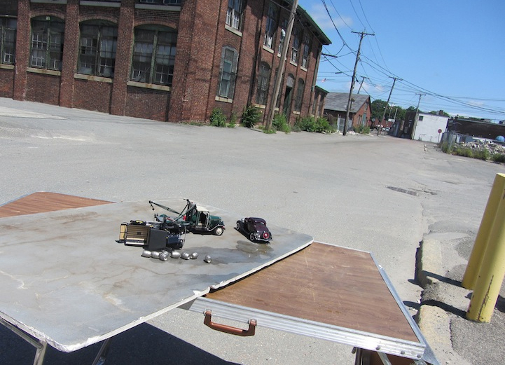 entièrement composées de modèles réduits réalisés par ses soins shootés en utilisant des décors réels bien choisis comme arrières-plans.