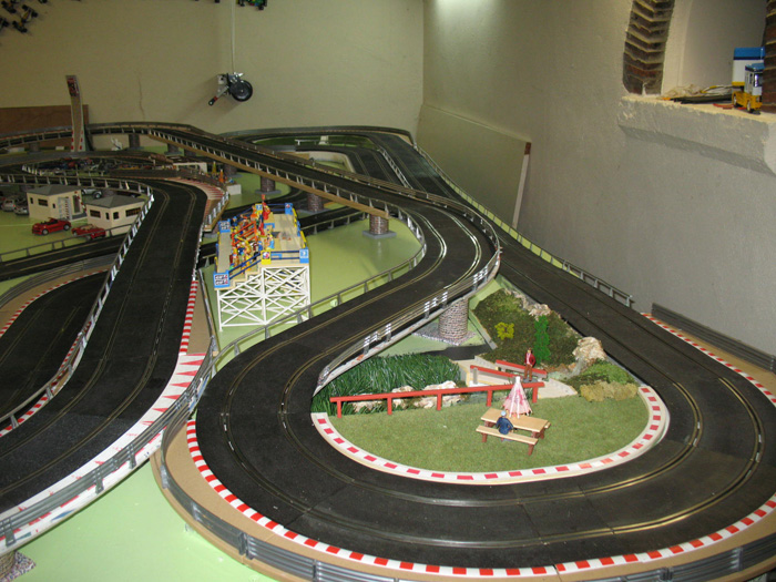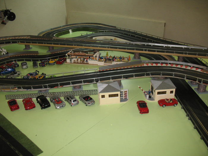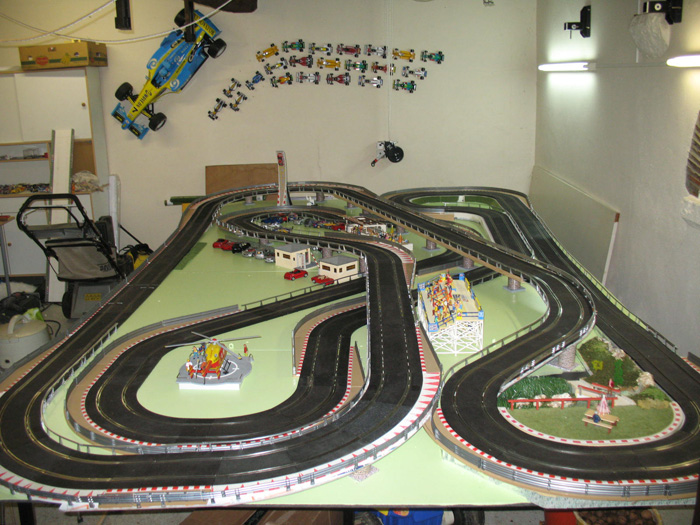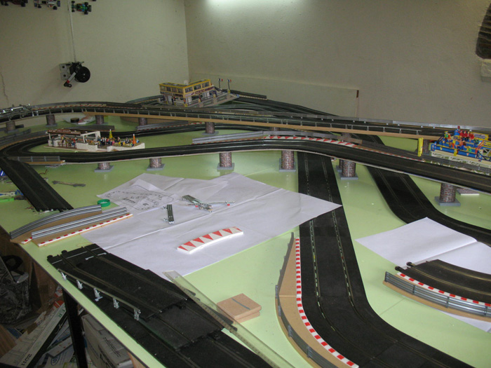 juste une question, pourquoi tu as surélevé la partie au fond à gauche (quand tu es devant la grande ligne droite) ?c'est pour améliorer la vision , comme j'ai augmenté la hauteur des ponts ( 100mm au lieu de 80) j'ai surélevé de 50mm la boucle ...