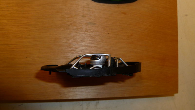 J'ai collé le moteur, mis un pignon laiton(le plastique à cassé), et coupé le châssis tout autour pour avoir plus de souplesse, des pneu BRM, coupé l'habitacle pour que le moteur passe et voila le travail !