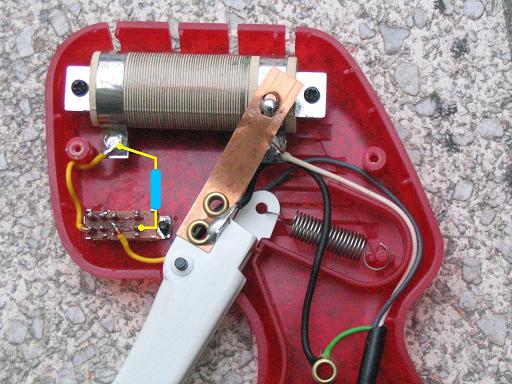 Prenons par exemple le milieu de la gâchette, avec une résistance variable de 35 ohms, on aura à peu près la moitié c'est à dire environ 17 ohms.