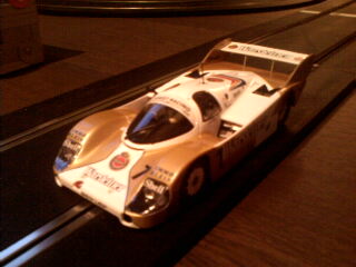 Moi c'est la 962 Rothmans (sauf erreur elles ont le même chassis) que je me suis offert à Noël ... sortie de boîte (donc avec aimant) elle est excellente et très stable, juste un bon rodage du moteur. Et meilleur chrono pulvérisé (même celui de la Jaguar)