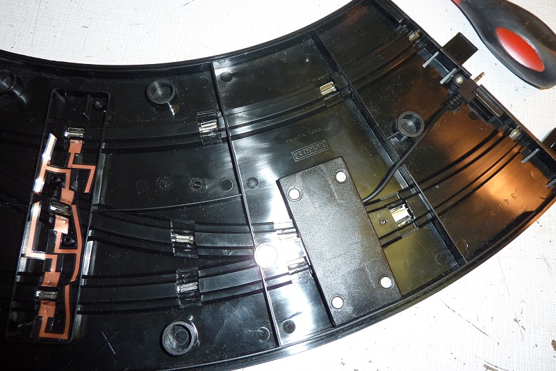 Avec un tournevis plat, soulever tous les ergots des rails et avec un cruciforme la partie comportant le shunt des pistes.
