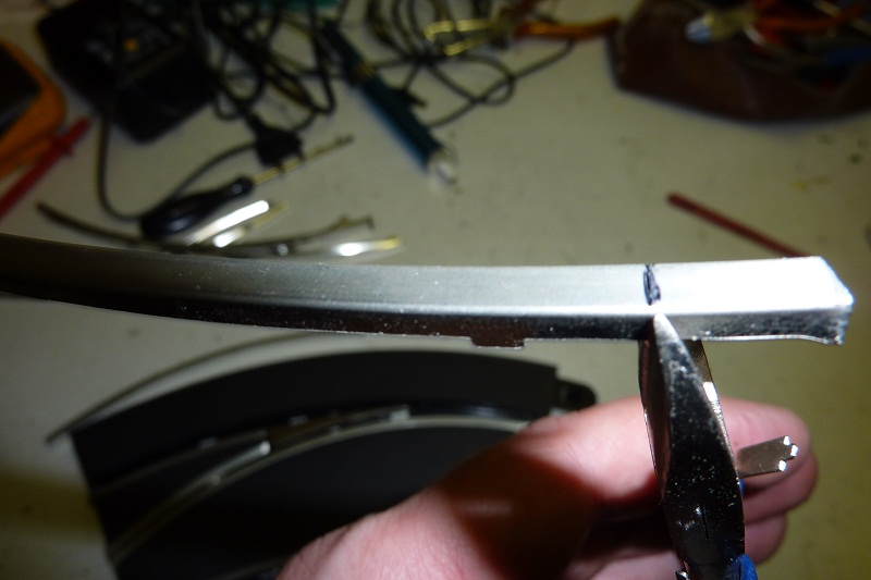 Il vous reste plus qu'a couper les rails à la bonne dimension. Procéder au marquage de celui-ci puis à l'aide d'une pince coupante, marquer les rebords du rails comme sur la photo, ainsi, il vous restera à plier le rail le long de votre tracé pour qu'il coupe proprement.