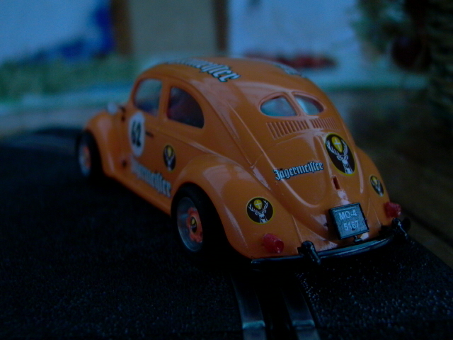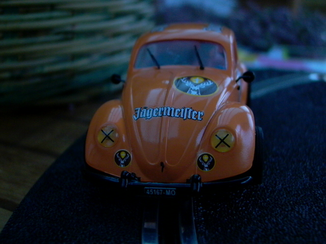 pour mon premier scratch complet, je suis parti d'une base "owners club" au 1/32ème. J'y ai adapté un châssis slot classic + moteur NC1 + transmission slot it + jantes alu hobby slot. Pour la déco, vu que la bombe orange était en route pur l'alpine A110 dernièrement présentée, et que j'aime bien l'orange, allez hop et quelques décalcs Jager..voici le résultat:
