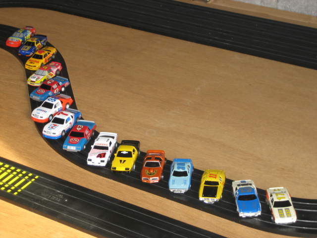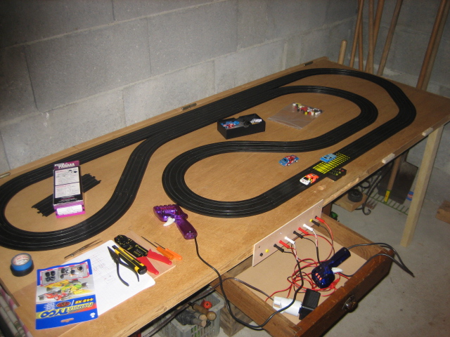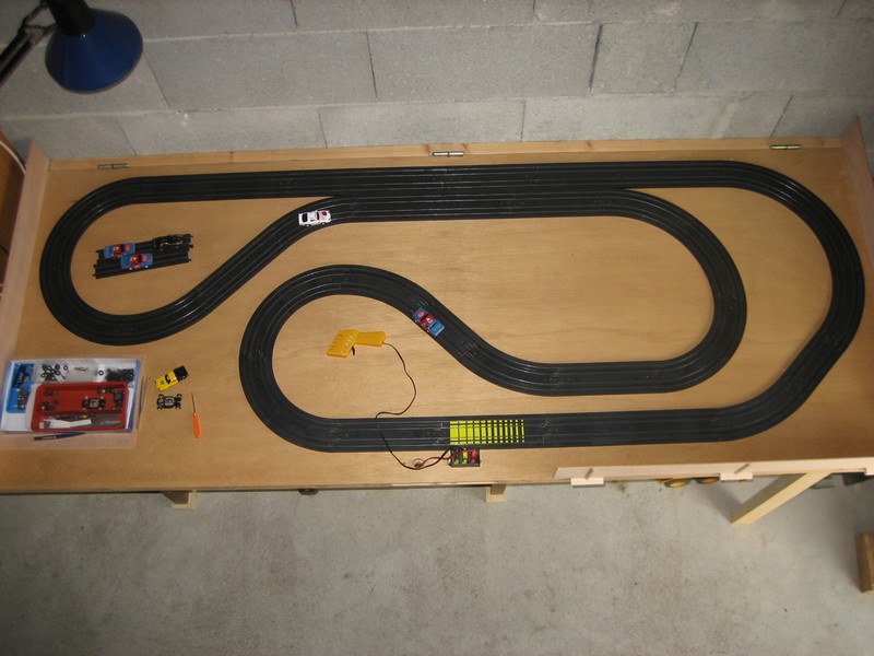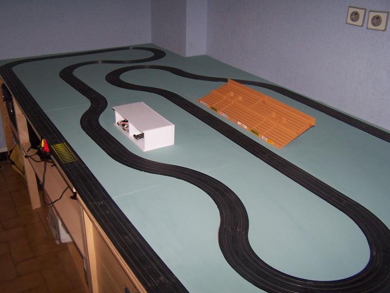 Par contre, il faudrait songer à mettre des barrières sur ta piste (enfin, ce n'est que mon avis), sinon tes caisses font faire des trous dans le mur (Tyco 440x2WP en magnetless sous 16 volts, ça déménage ...)