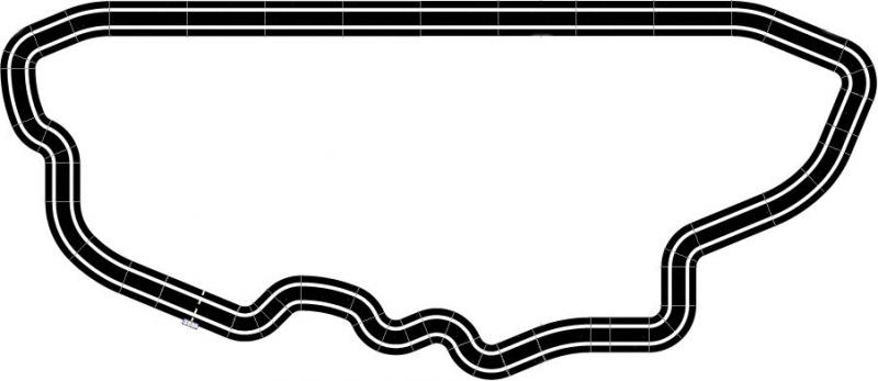 Je vous donne mon tracé en Scalextric du Mans 1977 en 3,96 m x 1,72 m :