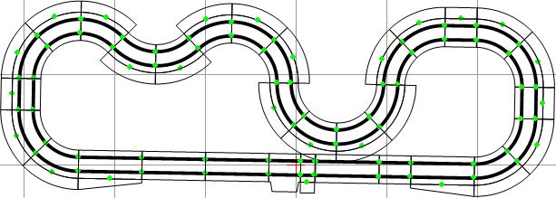 Donc tu mets tes bordures à l'exterieur de tous les virages. Cherches un peu sur le net ou télécharge Ultimate Racer 3 (gratuit) pour voir quel type de bordures fait scalextric.