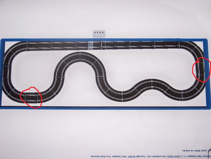 je viens d'essayer de faire le grand tracé dans le sens inverse sur le scalextric track designer, je ne me suis pas concentré bcp mais j'ai capté qu'il n'y a que deux endroits ou l'on peut mettre le transformateur scalextric sport dans la partie de courbes du circuit,