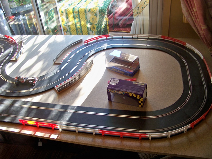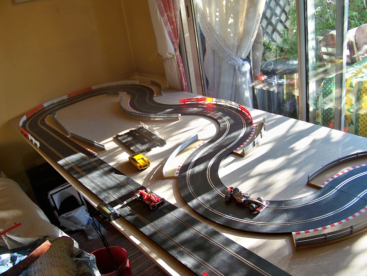 Bonjour à tous j'ai repris le slot depuis peu mais j'ai réduit dragstiquement la taille de mon circuit au point qu'il en soit minusule sur un plateau d'1m50 par 1m je ne compte pas agrandir le plateau et le tracé pour l'instant, voilà une photo de mon circuit actuel