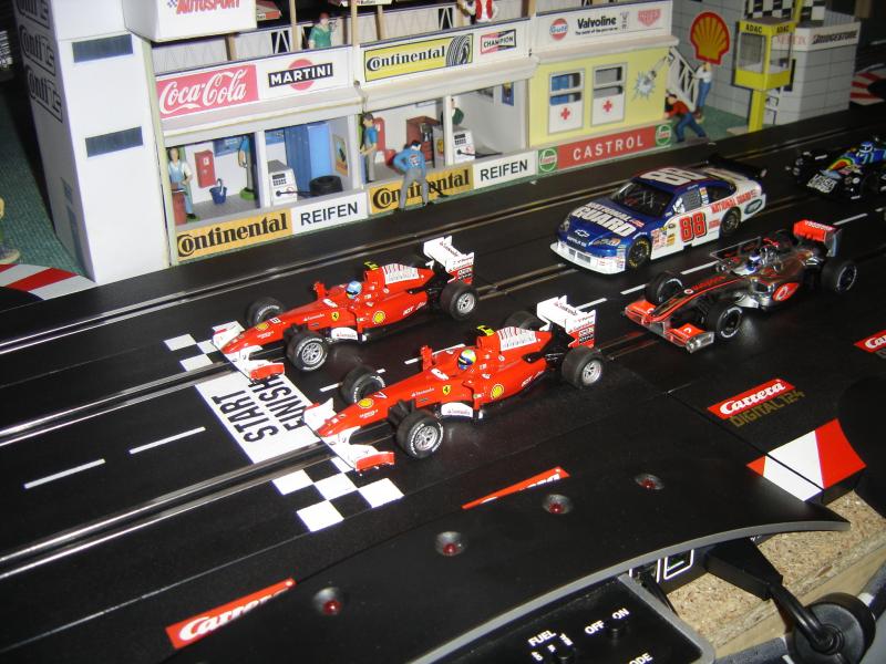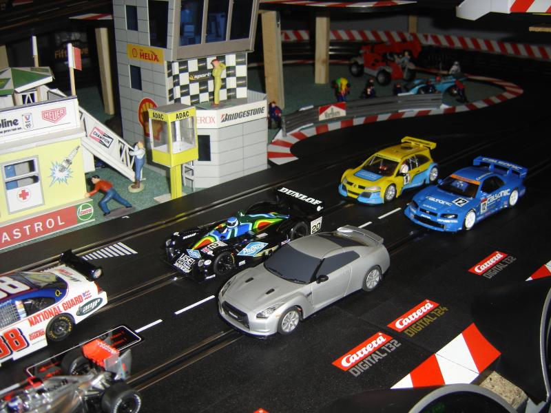 il est évident que venant de l'analogique, je cherche à digitaliser les voitures en ma possession.seul la mc laren est une carrera digital,les 2 ferrari f1 sont des évolution digitalisés,la nissan gtr, la nissan skyline,la chevrolet nascar et la lister storm sont des scalextric, la mégane une ninco.tous digitalisées avec des puces f1.