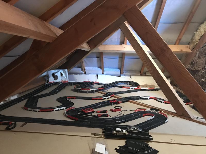 Il s'agit d'un kit Track master digital ( et ses maudits 30R1 ) plus un kit Pit lane et un Pro AM (la j'ai quelques environ 25R2 mais pas de R3 ). La problématique c'est que dans mon grenier je n'ai pas beaucoup de hauteur (donc pour faire un plateau c'est compliqué )