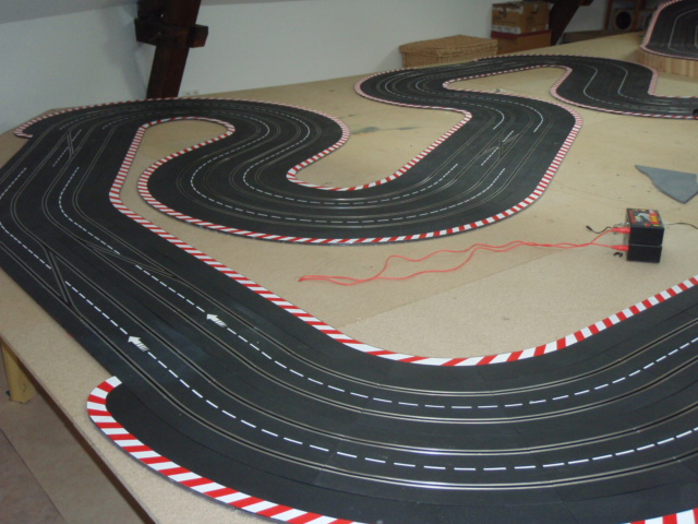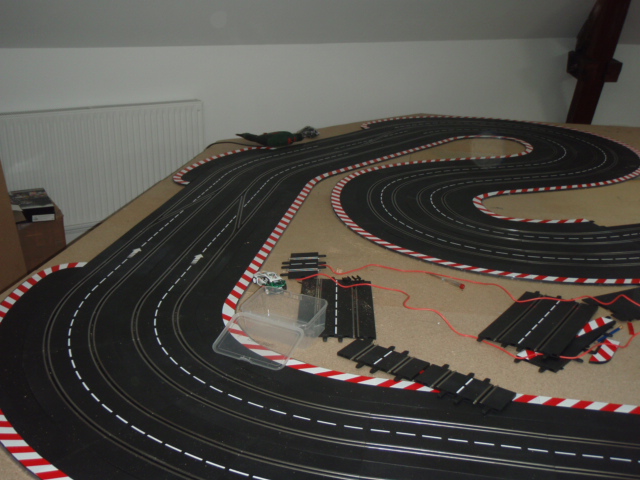 Bon hier soir petite séance de roulage pour voir si tout va bien. J'équipe une mégane renault ninco de pneus ultimatt et de sa puce davic, la piste étant alimenté en 12 volts.