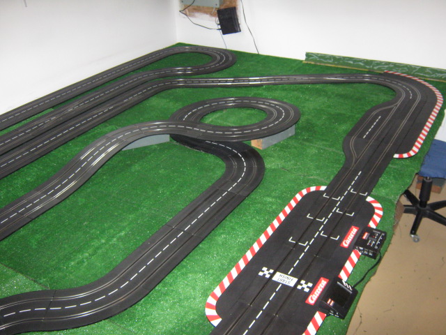 J ai décidé de tout défaire pour refaire un autre circuit de 106 pieds au lieu de 80 quelques...J ai réussi a faire pas mal de droites et courbes malgré tout.Je pourrais surement faire mieux avec plus d espace mais c est final je pense.Il sera tres rapide grace au longues droites et de beaux défis a plusieurs pilotes dans les courbes.Une bonne biére et un BBQ pour la finale.Merci de votre attention encore une fois.