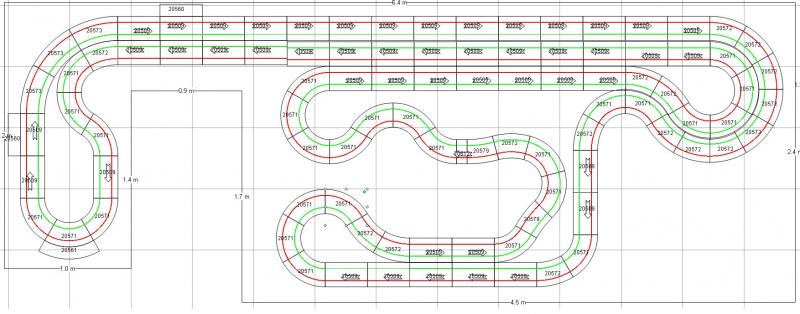 Bonjour à tous, j'ai décidé de changer mon circuit et d'exploiter au mieux la place que j'ai dans mon sous sol. Je suis en Carrera 1.32 analogique deux voies.