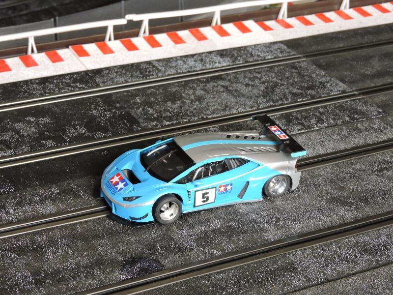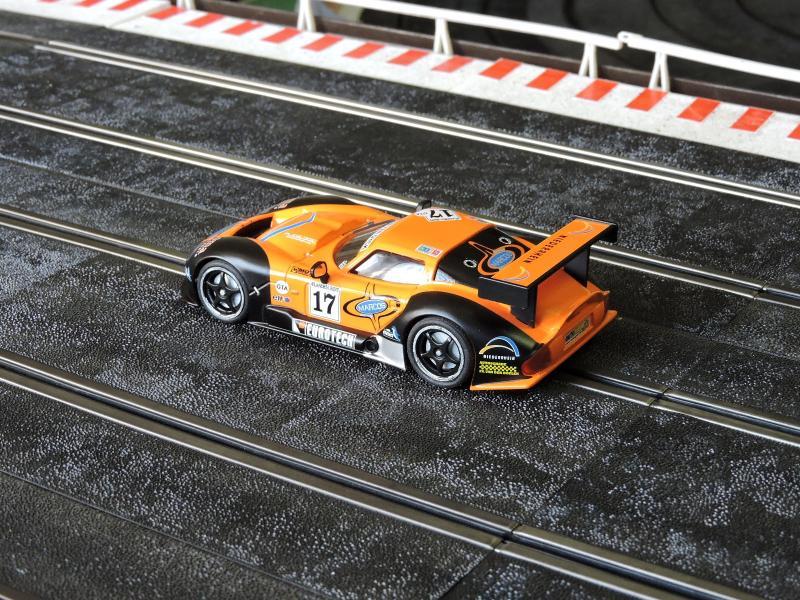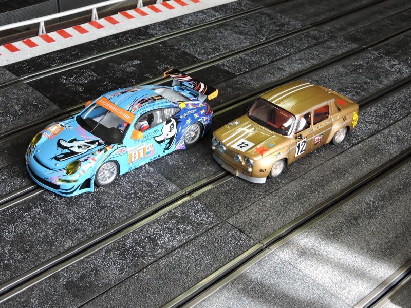 Abarth 1000 TCR de chez BRM, il parait que c'est du 1/24e, bon l'avantage c'est que ça passe sur toutes le pistes , en fait c'est aussi large que la R8