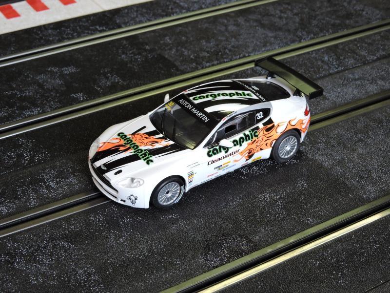 Porsche 911 GT3 Scaleauto au 1/24 e , c'est assez encombrant sur du Ninco mais ça passe, interpiste 9 cm , voiture 8.3 cm, il n'y à pas trop de marge, mais bon, c'est pour essayer et bien ça marche plutot bien , plus vite qu'une BRM , c'est gros, lourd mais finalement très agréable