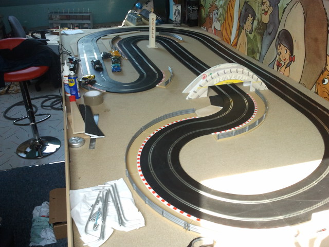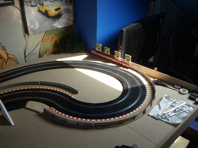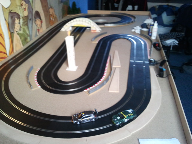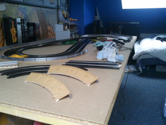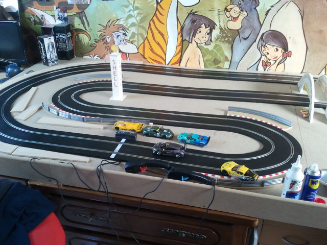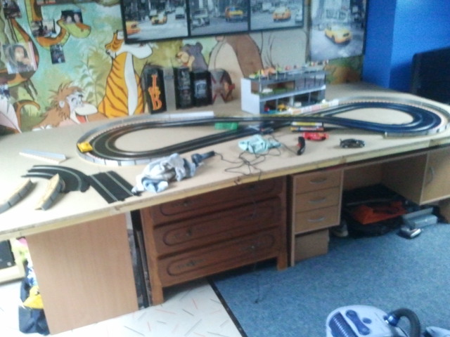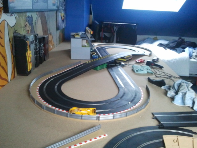 Donc voici mon plateau qui accueil (un petit) scalextric sport qui s'agrandira avec le temps !! de nouveau rail arrive samedi déjà.. :)