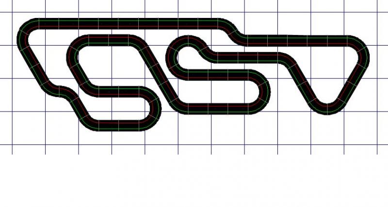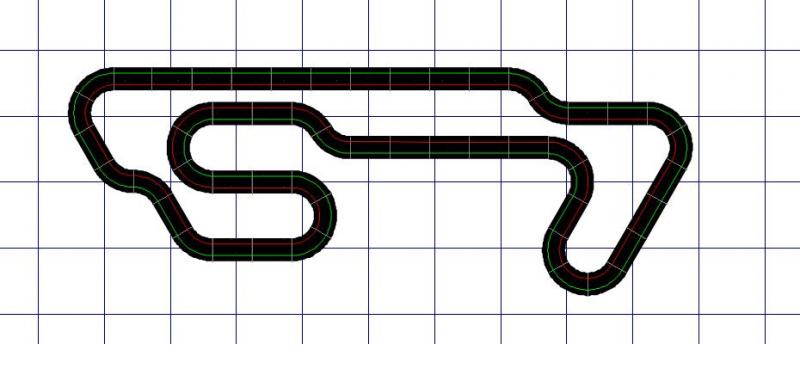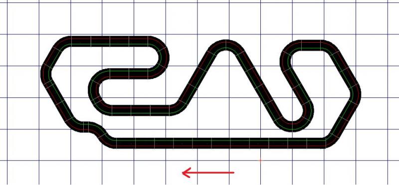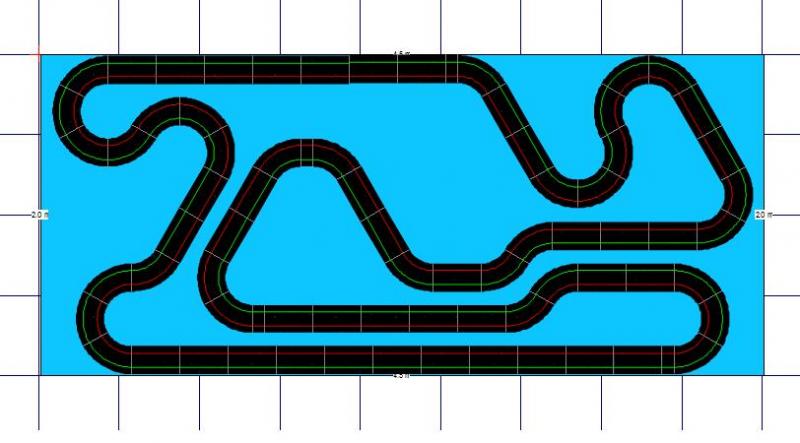 4ème tracé, je me suis basé sur ce que tu à dit au sujet du premier par rapport au circuit de Barcelone et ça donne ça: Longueur: environ 17m Plus grande ligne droite: un peu plus de 3m