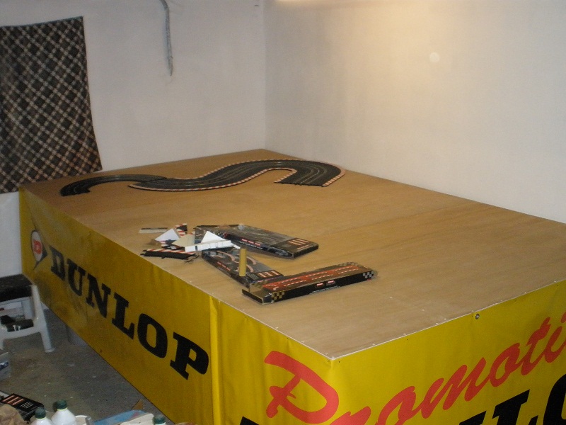 je me suis fabriqué tout une partie relevé en bois a la place des pieds carrera dans le virage au bord du plateau!