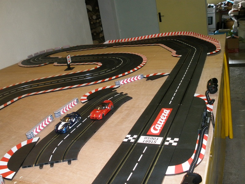 et puis les pieds carrera mon servis pour surelevé un leger poil l autre virage et j ai mis une barriere aussi !