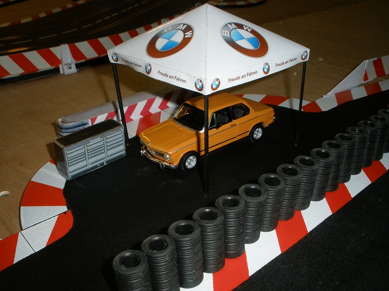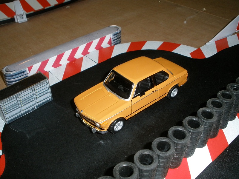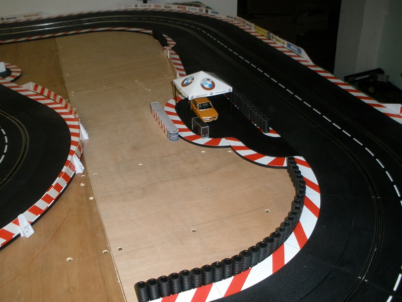 merci fazer ! bonsoir a tous les sloteurs fou ! en week end !ouf ! je viens vous donné des nouvelles de mon tracé pas eu encore le temps de finir la moquette mais des bonne ptites choses sont venu agrémenté celui çi ! tout d abord j ai pu remettre deux ptites tiers droite avant l épingle cette fois je suis pratiquement a ras de l autre droite j ai recus quelques murs de pneus pour agrémenté la piste mais va falloir en remettre quelques uns pour finir ! j ai trouvé ça aussi une chtite 2002 pour le safety que je tranformerait avec une barre de giro et des décalques bon vous allez me dire ça fait décalé mais j ai trouvé fun ! la voiçi dans son élément bon c est du burago au 1/32 mais c est correcte ! voilà pour les news ! la décos de celui çi sera typé germanophone je pense que vous l aurez deviné ! y a encore pas de taf mais je prend un réeel plaisir d attaqué la déco ! et puis noel arrive a grand pas au niveau voiture il y aura du neuf bientot ! enfin du vieux avec du neuf ! coque porsche 911 2,7 rs sur chassis slot it hrs avec jantes bbs version loloche bien sur ! voilà bonne fin de soirée a tous et rattaqué bien la semaine !