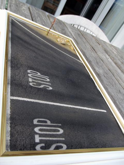 Quand c'est sec en surface, mais avant le séchage complet, je passe à nouveau un coup de rouleau à pâtisserie pour créer des craquelures naturelles du futur asphalte