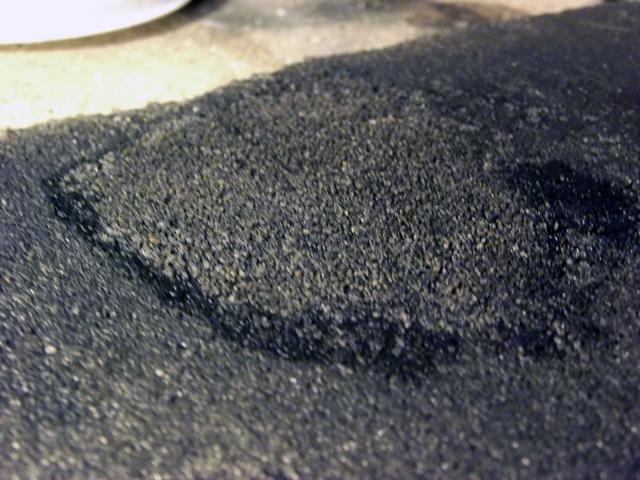 Lors de l'application du noir de vigne, ne pas appuyer trop fort, car encore une fois le sable était encore collé qu'en surface et c'est déchiré