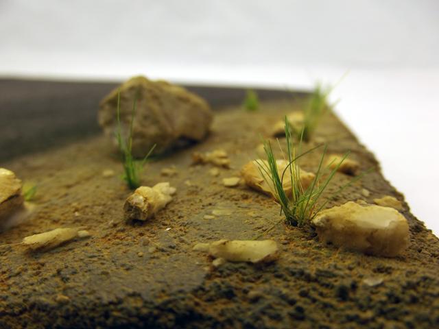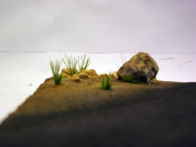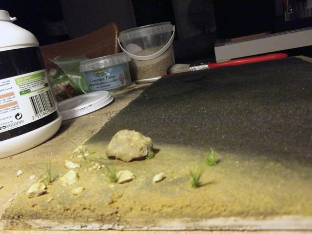 Collage des pierres, rochers et ajout d'un peu de verdure, même si le terrain est aride