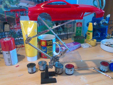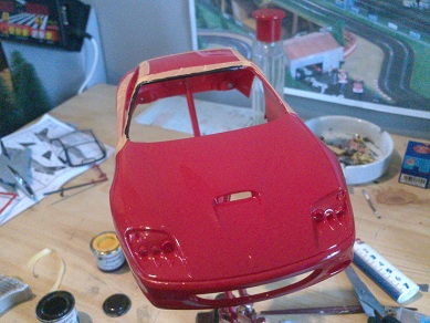 Mise en peinture de la bete à la bombe tamiya, masquage des joins sur les vitres et carrosserie et le montage de l'habitacle pas très compliqué non plus