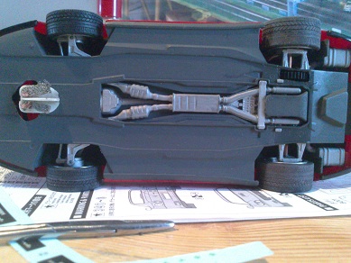 j'ai placer le moteur devant l'axe arrière et ajouté une jambe de force en renfort, renforcé le chassi au niveau du guide avec un morceau de plastique puis creusé devant affin de passer un guide NSR, j'ai également creuser le passage de la couronne.