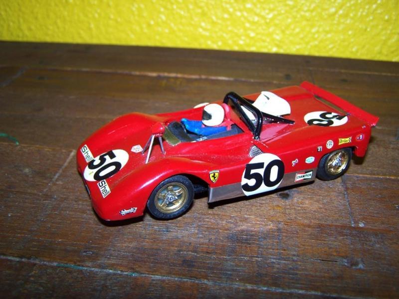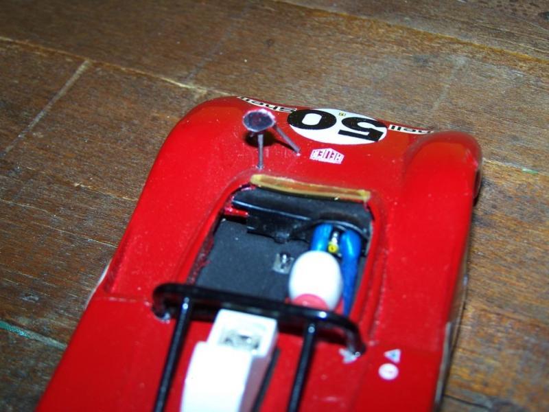 La fausse boite de vitesse et les pots d'échappement, proviennent d'une Ferrari 312 F1 de la game 1/32 Polistil en métal, achetée deux balle dans une brocante, parce qu'elle était incomplète et que sa peinture était écaillée.