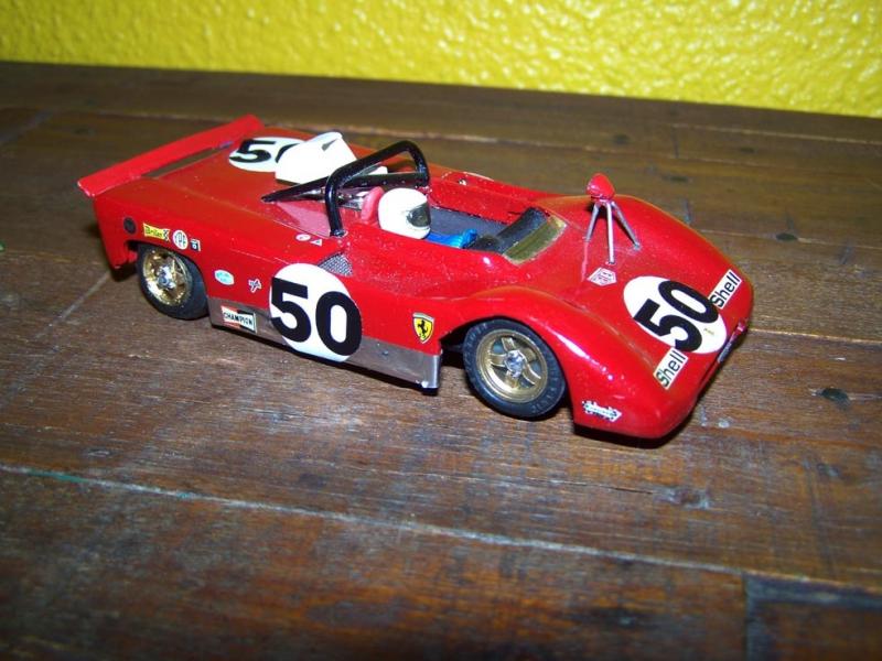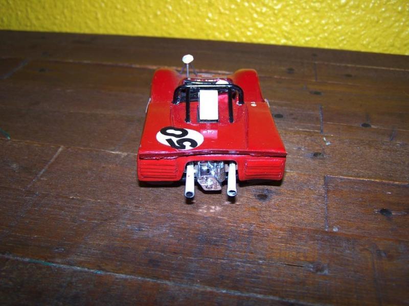 J'avais pas le talent de Marsu, alors je me suis contenté de torturer une pauvre Porsche 962 Scalex dont les ailes avant et le capot arrière sont en carton, tout comme la grosse écope qui alimentait le V12 en air. Le retro taillé dans un bout de plastique est monté sur un trépied en trombone et le miroir est un adhésif chrome.