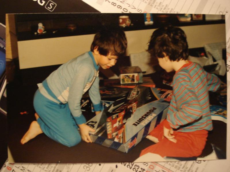 NOËL 1988, j'étais petit qui moi (8 ans, pyjama rouge ) et mon petit frére (6ans, pyjama bleu ) ont eu notre premier circuit électrique JOUEF "POLICE POURSUITE"