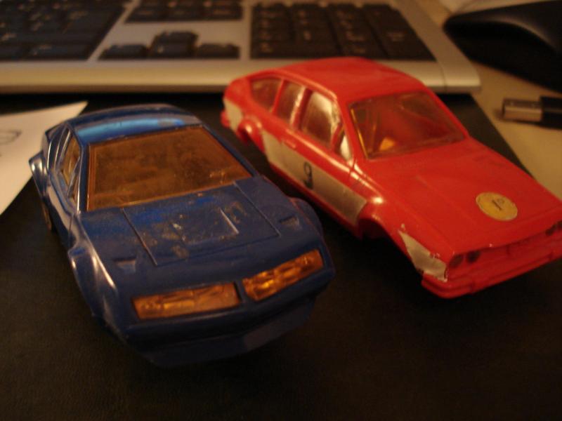 hier +2001 mes premiers rails sont vieux et cassés mais c'est fini !!!!! et mais je garde mes premieres voitures jouef 1/43° afla romeo gtv 2000 et alpine A310 et mes pieces jouef