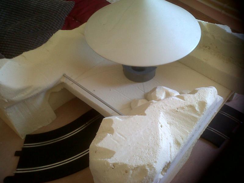 j'ai mis le 2e relief en route, en styrodur cette fois ci, je pense le recouvrir de bandes de platre aussi, qu'en pensez vous?? ca devrait maintenir les partie entre elles a mon avis!! Le cone abritera un bar, et quelques tables autour: je vais essayer d'eclairer tout ca en led ou neonLe bar en hauteurLe Cone est encore trop haut je pense le reduire la hauteur non??