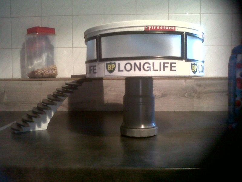Excusez du retard, effectivement, les poteaux des lampadaires sont dangereux, j'ai pensé trouver un genre de tube mousse qui pourrait les emballer sur une certaine hauteur ou bien faire des barrieres de pneus. J'y reflechi! Là je viens des les cabler, ils fonctionnent, reste plus qu'a les installer. Je me suis lancer dans la construction d'une tour de controle, je vous mets quelques photos, vous me direz ce que vous en pensez! Je bosse avec de la recup parce qu'au prix des elements ca pique!! je vous lance un petit jeu sur cette tour, saurez vous me dire a partir de quelle base j'ai pu faire ceci