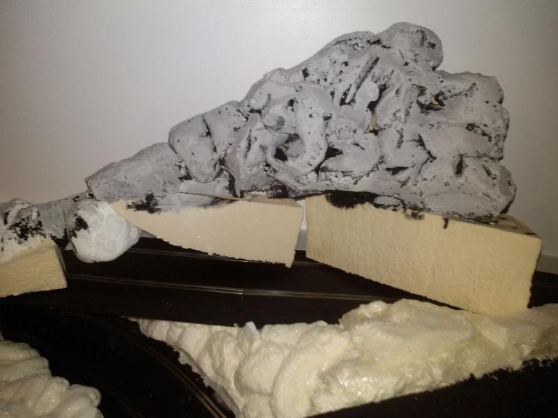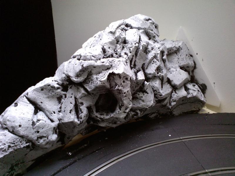 bonjour les copains sloteurs , allez quelques nouvelles du"chantier" . donc après quelques essais plus ou moins infructueux quand a la réalisation de la rocaille , j'arrive a un resultat pas trop trop mauvais dans l'ensemble .